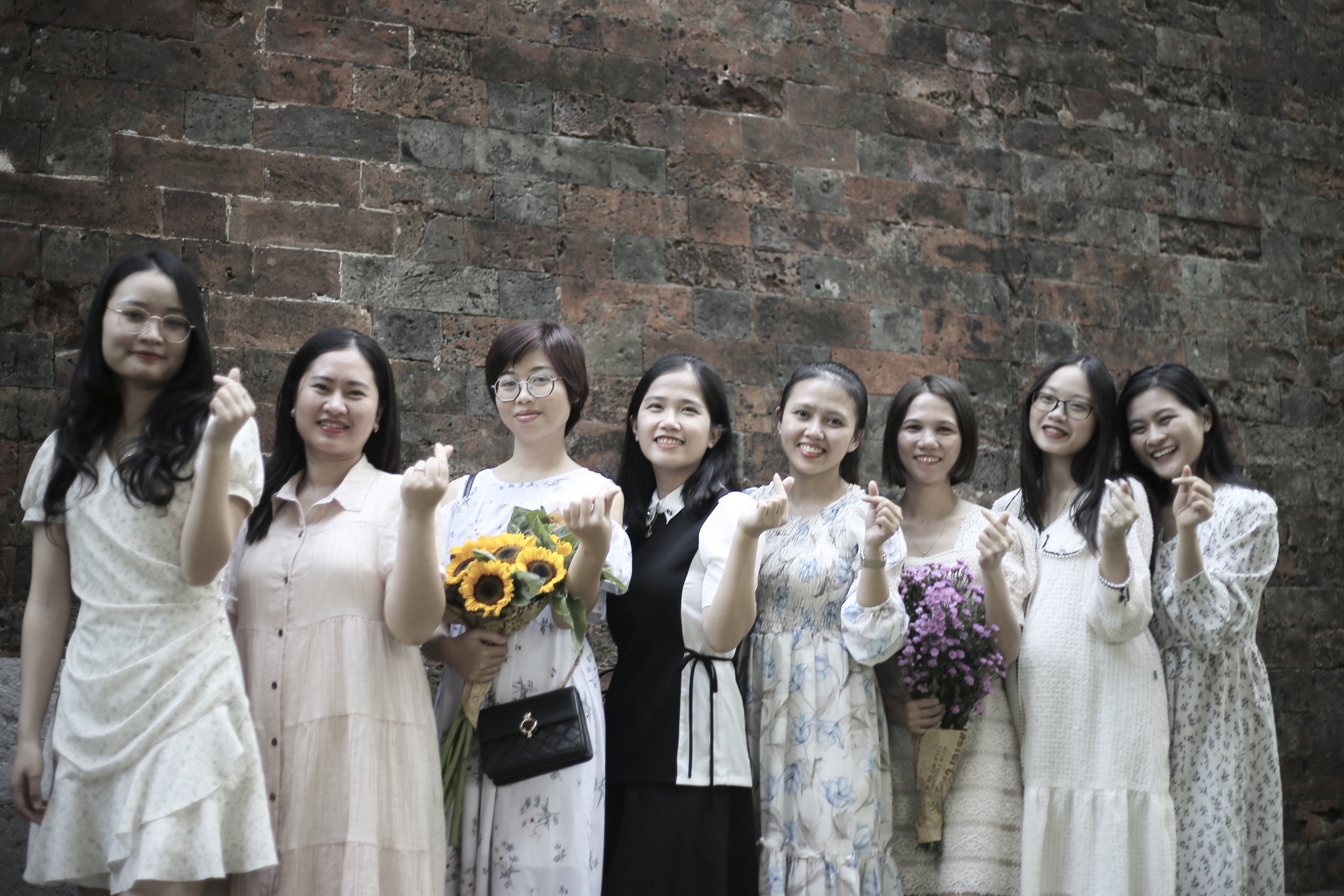 Điểm đến tiếp theo chính là hai cung đường ngắm mùa Thu đẹp nhất Hà Nội - Phan Đình Phùng và Thanh Niên. Chị bận áo dài thướt tha, em xúng xính trong trong những chiếc váy bay bay để cùng nhau ghi lại những phút giây tươi đẹp nhất. Những nụ cười tươi thật tươi, thật rạng rỡ đã đủ để chứng minh những bóng hồng của Happy Phar luôn rạng ngời, hạnh phúc đến thế nào.