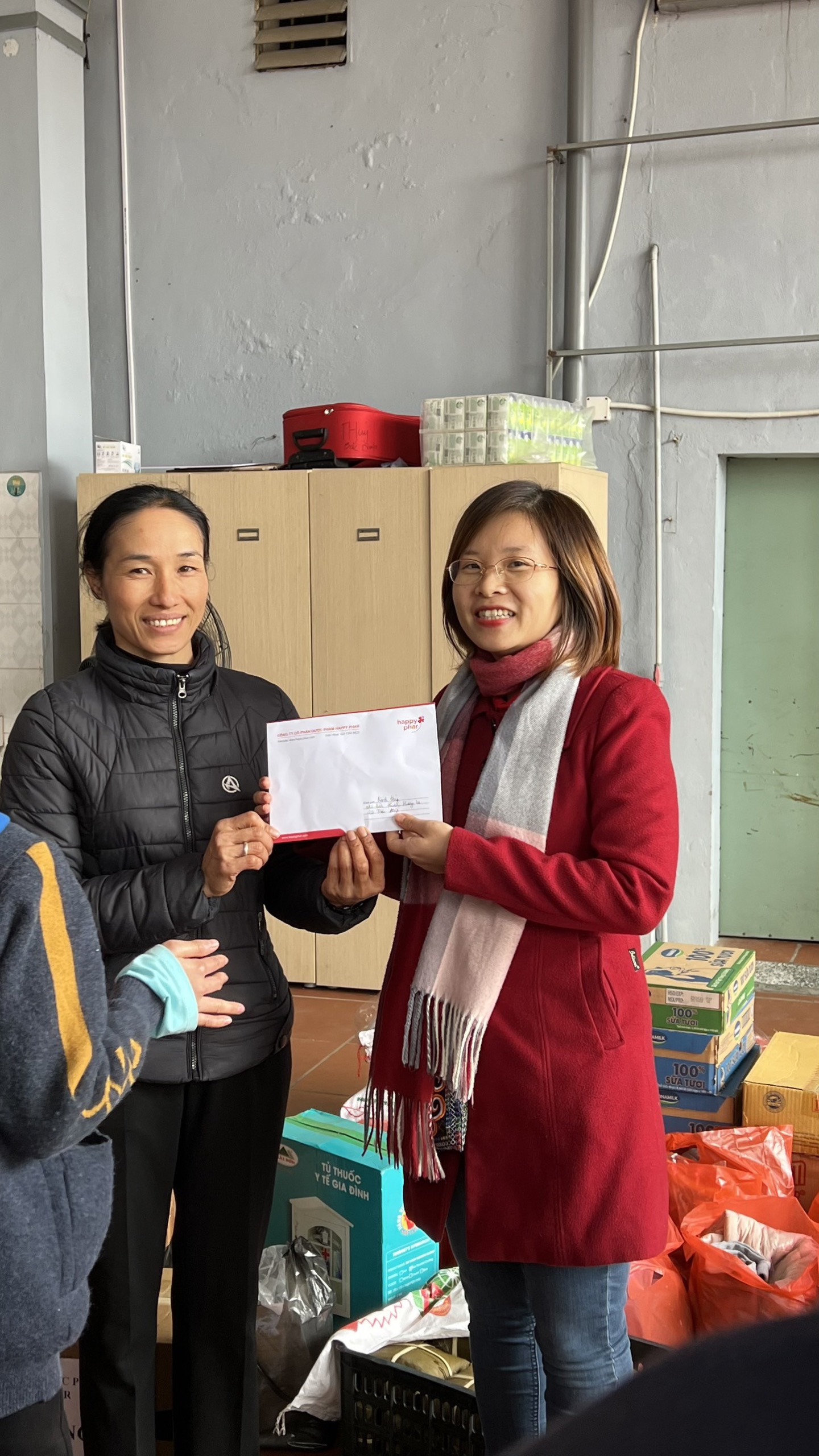 Sau bữa ăn, đoàn đã dành thời gian trao tặng những món quà đầy ắp yêu thương cho các con: 20 triệu đồng tiền mặt, tủ thuốc yêu thương, bánh chưng cho dịp Tết đến xuân về, quần áo ấm cho các con giữa tiết trời giá lạnh, đồ chơi đủ mọi lứa tuổi,... Món quà tuy nhỏ bé nhưng chất chứa rất nhiều yêu thương.