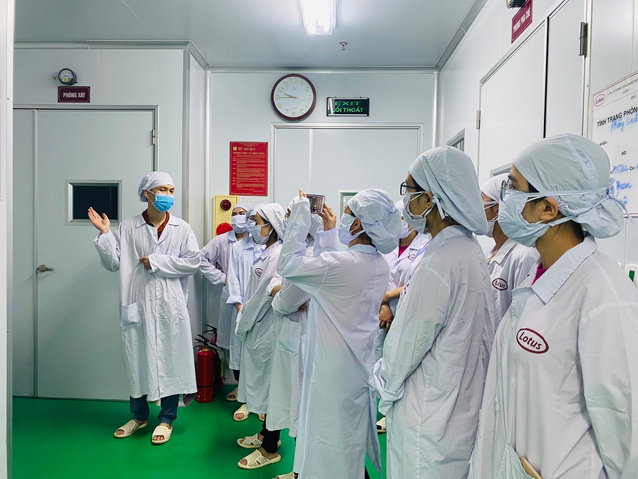 Theo sự tiếp đón và sắp xếp từ đội ngũ công ty Lotus, đoàn đã được chia làm 2 nhóm để tham quan lần lượt khu phòng Lab và khu sản xuất.