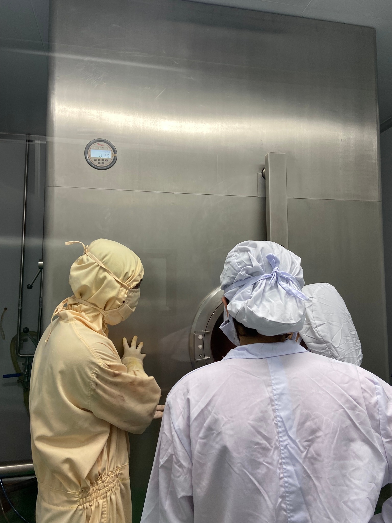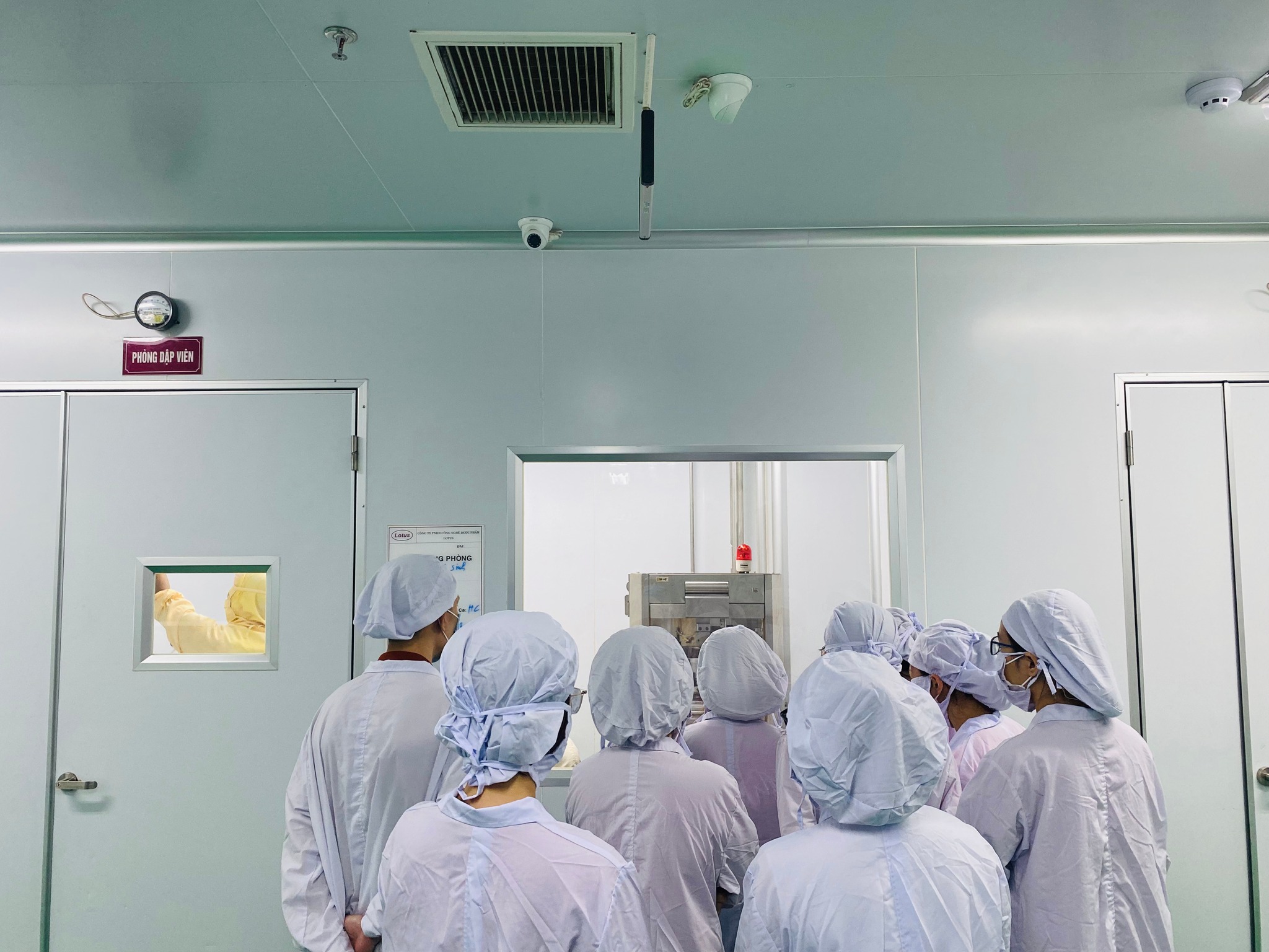 Hệ thống sản xuất hoàn toàn khép kín, áp suất bên trong phòng luôn cao hơn ngoài hành lang nên khi ra vào, các cửa đều bắt buộc phải được đóng chặt để đảm bảo không khí lưu thông chỉ được 1 chiều, tránh nhiễm khuẩn.